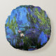 Claude Monet: Water-Lilies, blue indigo Round Cushion