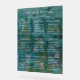 Acrylic wedding seating chart sign featuring modern typography in and Claude Monet Water Lilies painting background