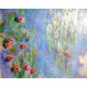 Water Lilies by French Impressionist Claude Monet. Monet did a series of 250 paintings featuring water lilies. The paintings depict his flower garden at his home in Giverny, and they were the main focus of his artistic production during the last thirty years of his life.
