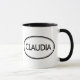 Check out this Claudia mug! Is your name Claudia? Or do you have a wife, girlfriend, female family member or female friend named Claudia? If so, this "Name Stamp" mug is exactly the gift that you're looking for! The design features "Claudia" in big black lettering surrounded by two ovals, one thin and one thick.