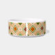 This is a heavy, durable bowl decorated with Tibbies of many colors, the perfect size for hungry/thirsty Tibs. The design is interesting and printing clear.