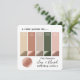 This is Chic Paperie's Wedding Colour Palette Card in the Clay and Blush Pink Colorway of: Clay Light Terracotta, Pale Blush Pink, Yellow Light Gold, Dark Forest Monstera Green, & Tapestry Taupe Beige. A beautiful colour combination for a barn or forest wedding, and is lovely for a fall or mid to late summer wedding! Shown with flat and metallic colour swatches. Colour swatches have the handy hex colour codes.