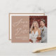 Clay Elegant Script Modern Photo Minimalist Wedding Save The Date Announcement Postcard. Let your family, friends and colleagues know that you have set a date for your wedding celebration with this elegant, stylish and modern wedding save the date invitation card. All the texts are pre-arranged for you to personalise easily and quickly with your own details.
