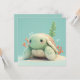 This heart-melting design features an incredibly adorable sea turtle with a sweet, minimalist smiling face and soft pink rosy cheeks. Rendered in a high-quality 3D clay style, the turtle has a smooth, matte mint green body and a multi-toned cream and peach shell. The character is resting on a patch of soft sand, accompanied by hand-sculpted orange coral branches and a tall stalk of green bubbly seaweed. Tiny white clay bubbles float in the water around the turtle, adding a sense of movement to the underwater scene. Set against a clean, solid light teal background, the overall "kawaii" aesthetic is modern, bright, and full of gentle charm, making it an irresistible choice for any fan of marine life and whimsical character art. This cheerful turtle postcard is a wonderful choice for sending a "shellebration" birthday wish or a playful summer greeting to a friend who loves the ocean. You might choose to use this cute animal card for an under-the-sea themed baby shower invitation or to celebrate a child's pool party with your family members. It also makes a precious decorative piece for a nursery wall or a bright addition to a beach house guest book as a small token of happiness. This versatile design is also an excellent choice for aquarium event announcements, marine biology club invites, or as a heartwarming way to share a short message of joy for any situation or event.