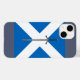 This design by Richard H. Fay combines an illustration of the distinctive Highland two-handed sword known as the claymore with the blue-and-white saltire of the Scottish flag.