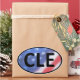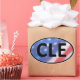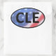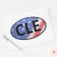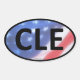 CLE Cleveland Hopkins airport oval sticker with USA flag background.