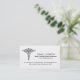 A medical business card featuring a medical caduceus on a simple black and white one sided business card.