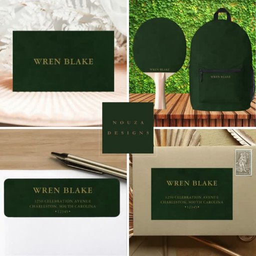 Clean Dark Green Leather & Gold Script Name Printed Backpack