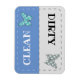 Cute sky blue, black, white, grey clean and dirty dishwasher magnet with turquoise blue polka dot pattern butterflies.