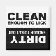 Magnet to place on the front of your dishwasher to help remember if dishes are clean or dirty. "CLEAN ENOUGH TO LICK, DIRTY ENOUGH TO EAT OUT"