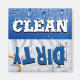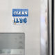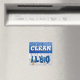 Cute and unique Clean and Dirty dishwasher kitchen magnet with blue sparkling bubbles with the word "CLEAN" in white text on one half and a coffee stained napkin is the background with the word "Dirty" in blue grungy text on the other half. A nice gift idea for the domestic goddess for her kitchen! The fun solution as to when to load and when to empty the dish washer.
