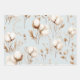 Clean Elegant Light Blue & Cream Cotton Flowers Wrapping Paper Sheet