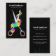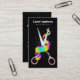Make a stylish statement with these eye-catching business cards! Featuring a vibrant rainbow ribbon wrapped around a pair of scissors on a black background, these cards are perfect for hair stylists who want to project a creative and professional image. Customise with your contact details and stand out from the crowd.