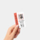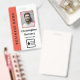 Vertical office employee badge with a clean minimalist design in orange, black, and white. Add a photo of the employee along with name and profession. Personalise further with your business logo and the name of the company.