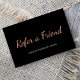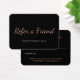 This sleek and stylish design features a black background with a subtle pink accent. The text is written in a modern font, making it perfect for professional businesses looking for a modern, yet sophisticated referral card.