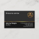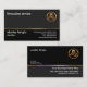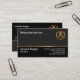 Overleaf, a similar design theme is used. At the top right corner is the familiar faux gold logo. Your prestigious name is at the opposite end of the card with a slogan option just below. In a large grey column with the gold demarcation line, rest the business name and contact details.