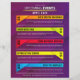 Organise your upcoming events with this clean & modern schedule planner flyer featuring colourful divider boxes and purple abstract lines background. Customise flyer to your liking and add a backside if desired!
