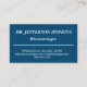 This basic, clean, and classy business card design features a dark blue background. It could be used by a professional such as a rheumatologist, cardiologist, doctor or surgeon. The name, profession and contact details can be personalised.