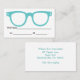 This clean and simple design features a pair of aqua blue eyeglasses against a white background on the front. Beneath this are standard blanks for jotting down the patient's name and appointment date and time with the doctor's office information printed on the back. Use the fill in the blank fields to customise the info on the back or the text on the front of this appointment card which is perfect for eye doctors, opthalmologists, and optometrists.