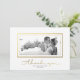 Customise this Stylish Modern White Thank You Horizontal Flat Card, designed with hand lettered script text thank you under a horizontal photo in faux gold frame. Simple light and elegant way to say thank you. Please note that the gold is a colour print (yellow) and is not actually gold metallic colour or gold foil. The back side has wording: "Thank you so much for sharing in our special day and celebrating the beginning of our new life together. We appreciate your well wishes and thoughtful gift." This text is fully customisable. Replace all the information and the template image with your own. If you need any additional changes click the Customise it! button or contact the designer. For best results use high resolution image, it can be in colours but this design looks specially chic when the photo is black and white. *Template photo credits © by Timothy Marsee