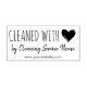 Cleaned with love rubber stamp with a doodled black heart. Customise with your name in a charming brush script and website.