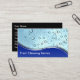 Cleaning business cards with stylish modern two side design include fresh water drops background, simulated metal background element and text area on the back of the business card you can customise now. Designed for a house or office cleaning, maid service, or housekeeper and housekeeping work.