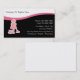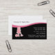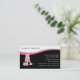 Cleaning business cards in a modern template design with a pink, black, and white colour coordinated design including a cleaning lady symbol designed for an independent housekeeper service, professional cleaning business, or maid service.