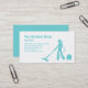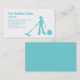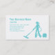 Business card with an iconic silhouette of a professional cleaner in shades of blue green and purple.