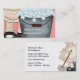 Cleaning service business cards with image of a bucket of soap bubbles and cleaning girl on the front and back in this modern two side business card design with text layout you can easily customise to your liking. Designed for themes related to housekeeper, house cleaning, maid, or housekeeping.