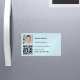 A light blue background. Personalise and add Your photo, name, text, contact info and your own url to your website or your social media account to the QR code. Black text.