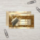Cleaning service business card is decorated with gold-coloured cleaning supplies. Best for commercial or residential services for cleaning, housekeeper, maid service, home services, as well as janitorial supplies.