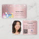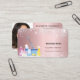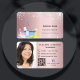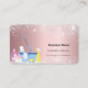 An elegant and glamourous business card on a blush pink gradient background decorated with faux glitter dust on front and cleaning equipment. Personalise and add Your photo, name, text contact info and your own QR code to your website address.