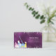 An elegant and glamourous business card on a purple background decorated with faux silver glitter dust on front and cleaning equipment. The purple colour is uneven. Personalise and add Your name, text contact info and your own QR code to your website address.