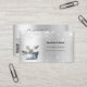 An elegant and glamourous business card on a faux silver looking background decorated with faux glitter dust on front and cleaning equipment. Personalise and add Your name, text contact info and your own QR code to your website address.