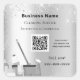 A faux silver metallic looking background decorated with faux glitter dust and cleaning equipment. Personalise and add Your name, text and your own QR code to your website address.