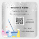 A faux silver looking background decorated with faux glitter dust and cleaning equipment. Personalise and add Your name, text and your own QR code to your website address.