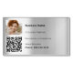 An elegant and glamourous business card on a faux silver looking background. Personalise and add Your photo, name, text, contact info and your own url to your website or your social media account to the QR code.