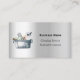 An elegant and glamourous business card on a faux silver looking background decorated with cleaning equipment. Personalise and add Your name, text contact info and your own QR code to your website address. Facebook and Instagram icons. Delete if not wanted.