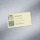 A yellow background. Personalise and add Your photo, name, text, contact info and your own url to your website or your social media account to the QR code. Black text.