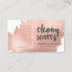 Modern photo business card designed for a commercial or residential services for cleaning, housekeeper, maid service, or janitorial supplies. Design featuring of single photo, typography script ''cleaning services'' in dark gray color, name and text line on the front. Customize the back with your full contact details and social media details.
