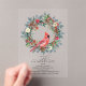 An elegant red cardinal nestled in a winter greenery wreath invites guests to your winter or Christmas birthday party. The watercolor design features a beautiful cardinal and a pine wreath decorated with red flowers and berries along with pine cones.
