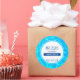 Candle or soap business labels with a photograph of clear blue pool water, with shimmering reflections. A white circle layered over top with your text inside.
