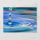 Clear blue water drops flowing into a pool of water. The water is rippling in circles and there are colourful reflections in the water in an abstract pattern.