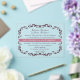Elegant, vintage Victorian filigree swirly, flourish leaves border design with typography wedding invite and sweet bride & groom monogram iniitals on the back.