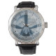 Closeup view of the propellers of the small piston aircraft against the background of dark cloudy sky. Clear prop! Off we go! Aviate, Navigate, Communicate! Wristwatch