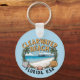 Customisable keychain featuring a retro style vignette of the Clearwater Beach, FL waterfront. Add name or message on back.