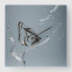 A transparent clearwing butterfly appears to be encased in a splash of water creating an ethereal blend of nature and water