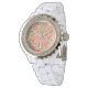 A beautiful White Rhinestone Watch, with a pretty Floral Clematis pattern in Red, Orange, Pink on a Taupe background and Green leaves. Part of the Posh & Painterly 'Clematis' collection, you can easily customise this Watch by rotating or resizing the Clematis pattern tile.