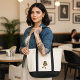 Love the durable cream colored canvas and navy blue contrasted handles. Perfect for carrying my laptop and papers.