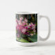 The tropical image on this Mug is an original photograph by ZoeSPEAK of a Starburst clerodendrum bush flowering at the edge of the woods. The white flowers on their magenta stems bursting out of the green leaf clusters give this variety its name. Palm trees and pine trees form the background. This plant blooms at the end of winter, more reliable than a groundhog. There is optional text (Charlotte) which is set for you to personalise, or delete if you prefer.
